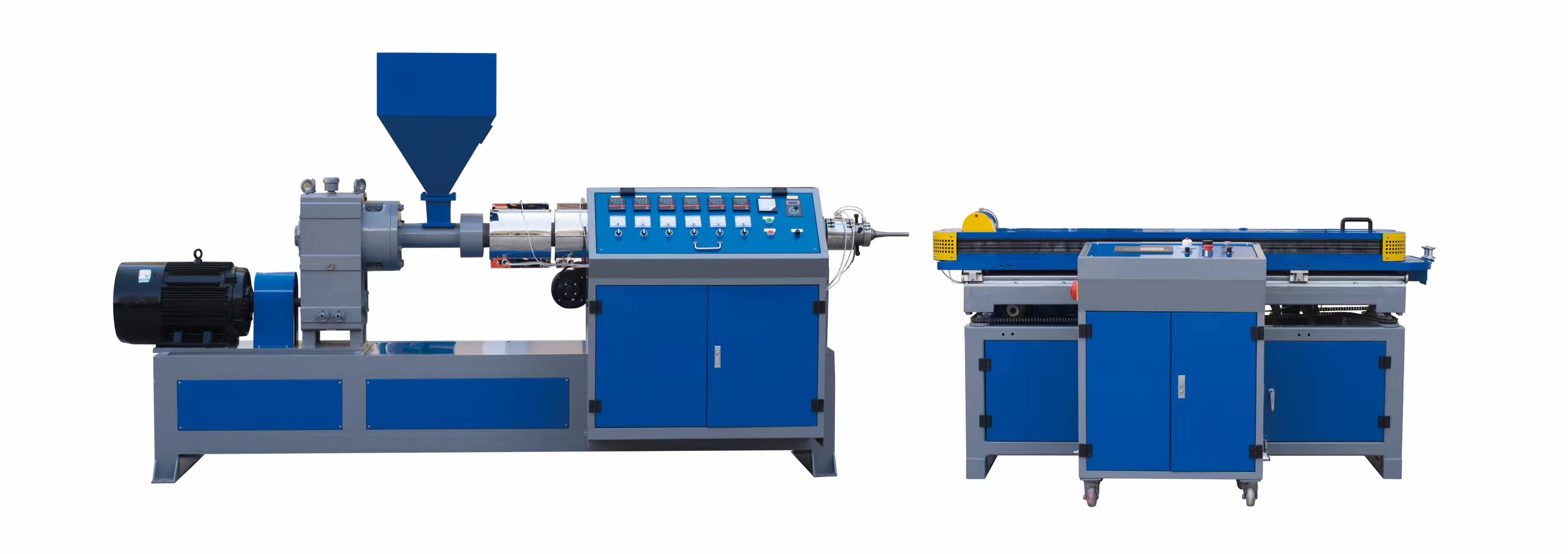 此生产线主要用于生产单色PP/PE波纹管为立式或卧式结构。成套机组配置由单螺杆挤出机,挤出模具、成型机、收卷机组成。